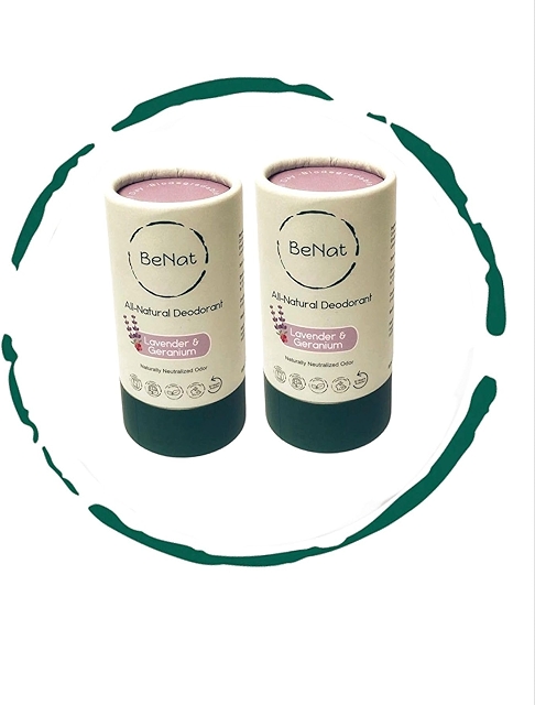 BeNat. 2-Pack. All Natural Deodorant Plastic Free For Women & Men Lavender & Geranium Aluminum Free, Gluten Free & Cruelty Fre...