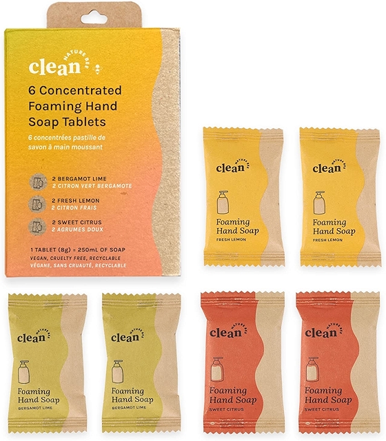 NATURE BEE Foaming Hand Soap Concentrated Refill Tablets (6 Pack, 8.5 fl oz per Soap Tablet, Total 51 Fluid Ounces) Fresh Lemon, Sweet Cit...