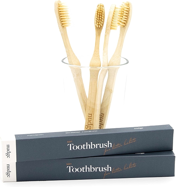 Nudge Natural Bamboo Toothbrushes with Bamboo Bristles, (Pack of 4) Soft Bristles Toothbrush, Biodegradable, Eco-Friendly, Sustainable Mat...