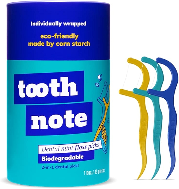 Toothnote Portable Dental Floss Picks, Tooth Picks, Eco-Friendly High Toughness Biodegradable Floss Sticks - Individual Package for Daily,...