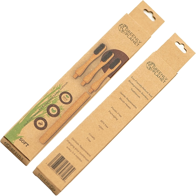 greenlyplanet Bamboo Toothbrush Handle with 3 Replaceable Heads - BPA Free & Cruelty-Free Soft Bristles - Eco-Friendly Removable Tooth...
