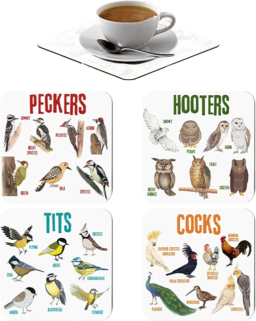 4 Pcs Bird Pun Coasters Bird Pun Coasters Eco-Friendly Absorbent Coasters Cute Coaster Table Coasters Square Coaster Set Wooden Bird Pun C...