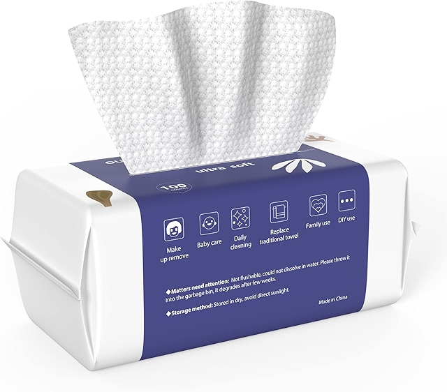 Ourmed Life Face Clean Towels, 100 Count Disposable Biodegradable Facial Wash Cloth for Sensitive Skin, Lint- free Facial Tissue for Clean...