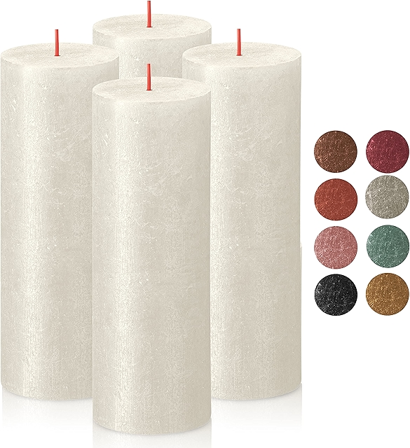 BOLSIUS Ivory Shimmer Metallic Pillar Candles 4 Pack - 2.75 X 7.5 Inches - Premium European Quality - Natural Eco-Friendly Plant-Based Wax...
