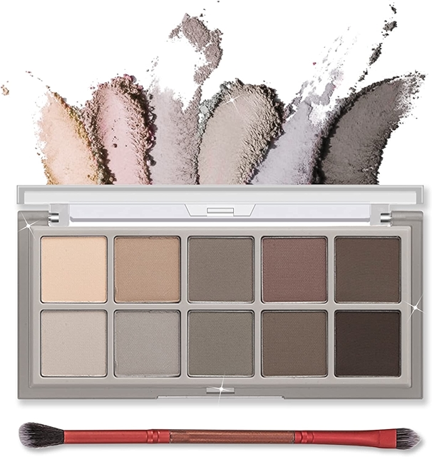 Erinde 10 Colors Eyeshadow Palette - Matte Gray Brown Eye Shadow, Ultra-Blendable, Pigmented, Long Lasting, Neutral Nudes Naked Taupe Eye ...