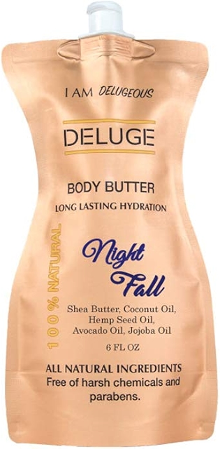 Body Butter- Nightfall - 100% Natural. Shea Butter, Coconut Oil, Hemp Seed Oil, Avocado Oil, Jojoba Oil. 6 oz. -Eco-Friendly Packaging.