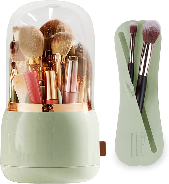 MUFMUF 2Pack Makeup Brush Holder,360 Rotating Acrylic Makeup Brush Organizer with Lid,Spinning Makeup Storage Container,Comes with a Trave...