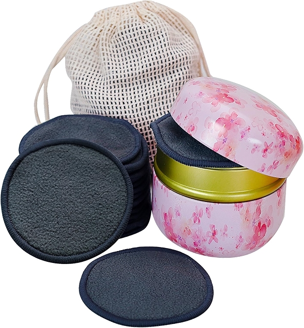 Reusable Pads Makeup Remover Pads with Washable Laundry Bag & Storage Box Eco-Friendly Bamboo Charcoal Pads (Pink)