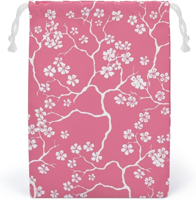 Cherry Blossoms Branches Floral Pink Eco-Friendly Cosmetic Bag Burlap Gift Bag with Drawstring Toy Organizer Candy Bags Small Pouch Jewelr...