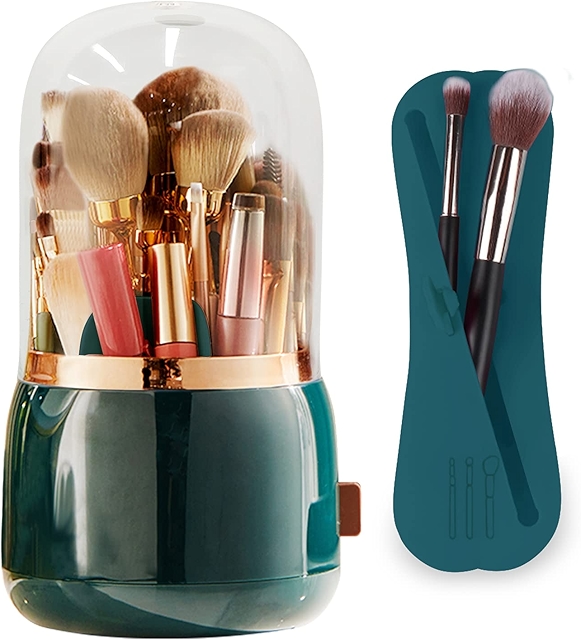 MUFMUF 2Pack Makeup Brush Holder,360 Rotating Acrylic Makeup Brush Organizer with Lid,Spinning Makeup Storage Container,Comes with a Trave...