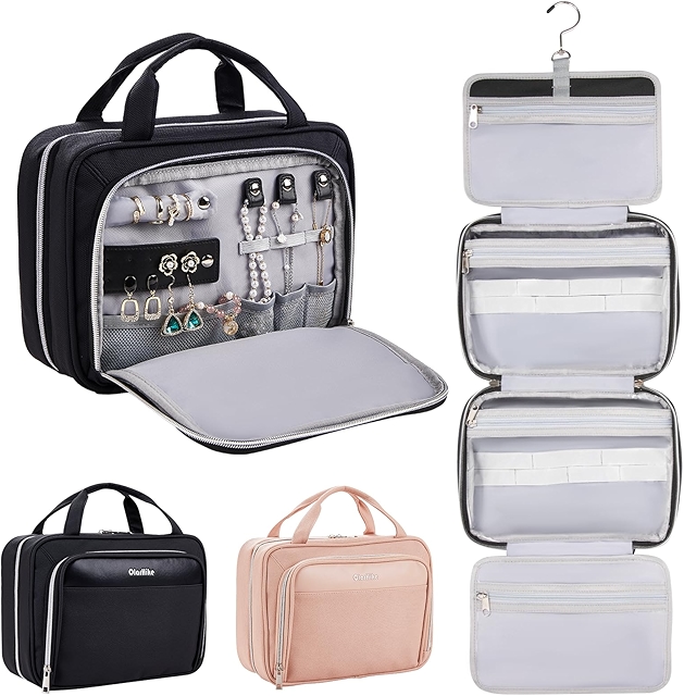 OlarHike Travel Toiletry Hanging Bag Waterproof Leather Bags, Makeup, Toiletries, Jewelry, Travel Essentials 3 in 1 Packing Organizers, Tr...