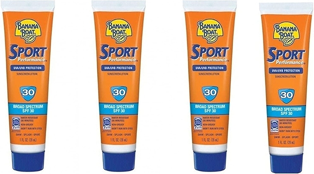 Banana Boat Sunscreen Sport Performance Broad Spectrum Sun Care Sunscreen Lotion - SPF 30 1 Oz Travel Size (Pack of 4)