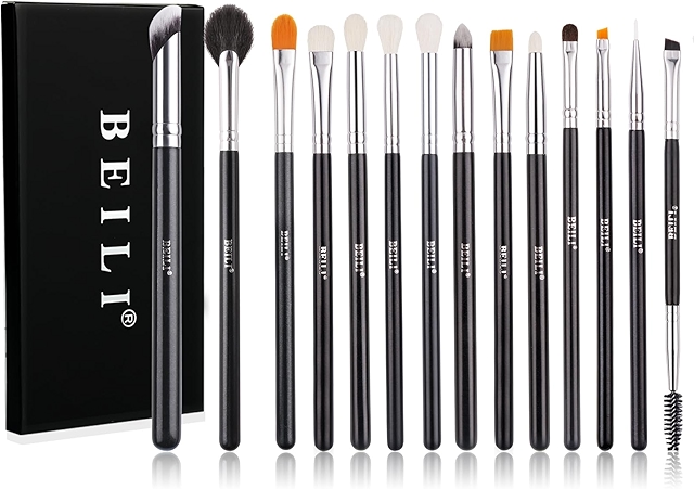BEILI Eye Makeup Brushes 15Pcs Professional Eyeshadow Brushes Set with Premium Natural Hairs and Soft Synthetic Hairs for Eye Shadow Blend...