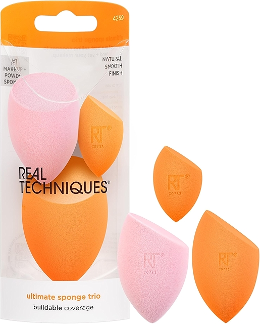 Real Techniques Ultimate Makeup Sponge Trio, Makeup Blending Sponges, For Liquid, Cream, & Powder Products, Powder & Foundation Sp...