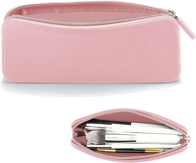 TailaiMei Large Travel Makeup Brush Holder - Zipper Anti-Fall Out Silicon Cosmetic Pouch, Makeup Tools Organizer For Travel (7.6 * 3.1 * 0...
