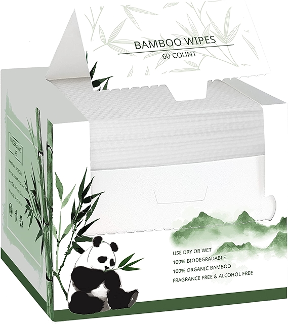 WOWOTEX Bamboo Disposable Face Towel Biodegradable Large Dry Face Wipes 60 Count/1 Box Extra Thick Soft Clean Facial Towels for Sensitive ...