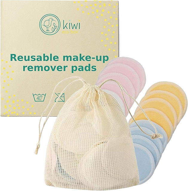 KIWI ECO BOX Reusable Makeup Remover Pads (15 Pack) With Washable Laundry Bag | Eco-Friendly Reusable Cotton Rounds For Toner