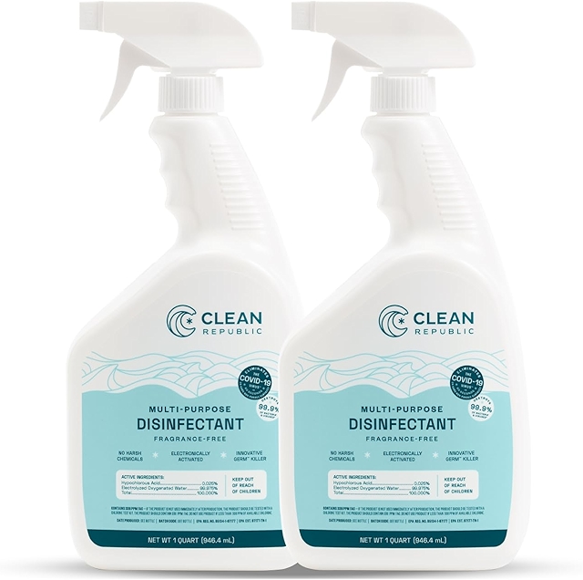 Clean Republic Multi-Purpose Disinfectant Antibacterial Spray, For Disinfecting and Deodorizing, Bleach Free and Fragrance Free, 32oz - 2 ...