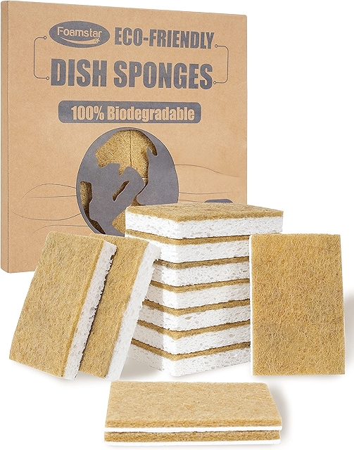 Biodegradable Natural Kitchen Sponge 12Pack, Compostable Cellulose and Coconut Walnut Scrubber Sponge