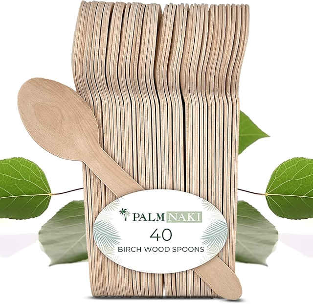 Palm Naki Birchwood Cutlery (40 Count) - Disposable Dinnerware, Eco-Friendly, Compostable and Biodegradable Cutlery (Spoons)