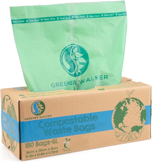 GREENER WALKER 100% Compostable Trash Bags, 1.6 Gallon-150Bags, Food Scrap Kitchen Waste Bags with EN13432 Certified