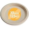 100% Compostable Disposable Paper Plates Bulk [10" 125 Pack], Bamboo Plates, Eco Friendly, Biodegradable, Sturdy Large Dinner Party Plates, Heavy-Duty, Unbleached by Earth's Natural Alternative