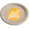 100% Compostable Disposable Paper Plates Bulk [7" 240 Pack], Bamboo Plates, Eco Friendly, Biodegradable, Sturdy Small Dessert Party Plates, Heavy-Duty, Unbleached by Earth's Natural Alternative