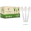 100% Compostable Spoons - 500 Large Disposable Utensils (6.5 in.) Bulk Size Eco Friendly Durable and Heat Resistant Alternative to Plastic Spoons with Convenient Tray by Ecovita