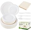 FOCUSLINE 300Pcs Compostable Party Dinnerware Set for 50 Guest- Heavy Duty Compostable Plates and Utensils Napkins, Eco-Friendly Biodegradable Plates Made of Natural Sugarcane Fibers