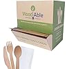 WOODABLE Disposable & Backyard Compostable Wrapped Wooden Cutlery Set, Eco-Friendly, Sustainable, Organic, Biodegradable, Vegan-Friendly, 50 packs with knife, fork, spoon and napkin, 150 Utensils
