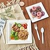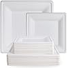【Disposable Square Plates】Set includes 60 pack 10 inch compostable dinner plates and 60 pack 8 inch dessert plates, The simple and atmospheric white bagasse plate are perfect for daily meals, birthdays, camping, picnics, wedding.