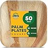 Pure Palm 10 in Party Plates Palm Leaf Plates Biodegradable Plates 50 pc Nice Compostable Bamboo Wood Look Large Square Disposable Plates, Eco Friendly Paper Dinner Plates Party Wooden Style Plates