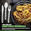 High Quality : Our Heavy duty compostable plastic silverware are made with premiuim CPLA from NON-GMO cornstarch, BPA-free and non toxic materials. Compost in commercial facilities.