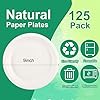 COSBAY 125 Pack Paper Plates,9 Inch 100% Compostable Heavy-Duty Plates,Eco-Friendly Disposable Plates,Biodegradable White Bagasse Plate for Party Picnic Camping