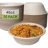 [50 Pack] 40 oz Round Disposable Compostable Paper Bowls Heavy-Duty, Eco-Friendly Natural Bagasse Unbleached, Heat Resistant, 100% Biodegradable Salad Bowls Alternative to Plastic