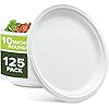 SALAR COMPANY PRODUCTS 100% Compostable, Natural Paper plates 10 Inch 125 Pack Super strong Made from Sugarcane, Eco Friendly For Wedding, BBQ, Birthday, Party, Picnic, and thanksgiving