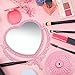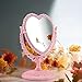 "This heart shaped mirror is so cute, and perfect for little girls or the young at heart. It is made of thick off white / beige colored plastic, but features a great amount of ornamental details. While it is a lightweight mirror, and the base is hollow, the base is wide enough where the mirror won’t topple over. The mirror is double sided (both sides are normal-sized reflections, no magnification). You can spin the heart on its axis to angle the surface.