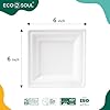 ECO SOUL Pearl White 6 Inch Square [200-Pack] Paper Plates (PFAS free) | 100% Compostable Disposable Bagasse I Heavy-Duty Eco-Friendly Dinner Plates I Biodegradable Sugarcane Eco Plates