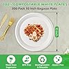 JOLLY CHEF 300 Pack Compostable Paper Plates 10 inch Super Strong Disposable Paper Plate 100% Bagasse Natural Biodegradable Eco Friendly Sugarcane Plates