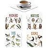 HIGH QUALITY: The coasters for drinks are made of wood, simple and classy square coaster protect furniture from water marks scratch and damage, with these set of drink coasters, no more drinks slipping and sliding around, lots of different birds on the front which looks really stylish, suitable for all kinds of cups.