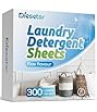 【Package Conetent】The laundry soap sheets detergent tablets box contains 300 small loads=150 large loads=150 sheets. They are precut and pre-measured to avoid overused. Measuring cups are no longer needed. (Tip: If your clothes are very dirty, please soak the clothes with sheets for 15-30 minutes before washing them. )
